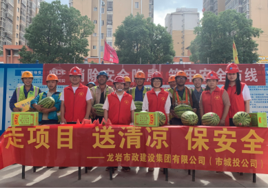“弟兄們,來吃西瓜、喝涼茶”7月3日大中午,龍巖市政集團(tuán)組織的黨員、志愿者們?yōu)槲玳g在項(xiàng)目現(xiàn)場暫時(shí)休息的一線工人們獻(xiàn)上一塊塊甘甜可口西瓜。這是該公司針對(duì)近來天氣悶熱特意為一線職工開展的“走項(xiàng)目、送清涼、保安全”活動(dòng)。班子成員兵分幾路分別帶隊(duì)前往龍巖大橋、浮…
