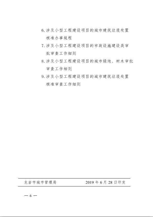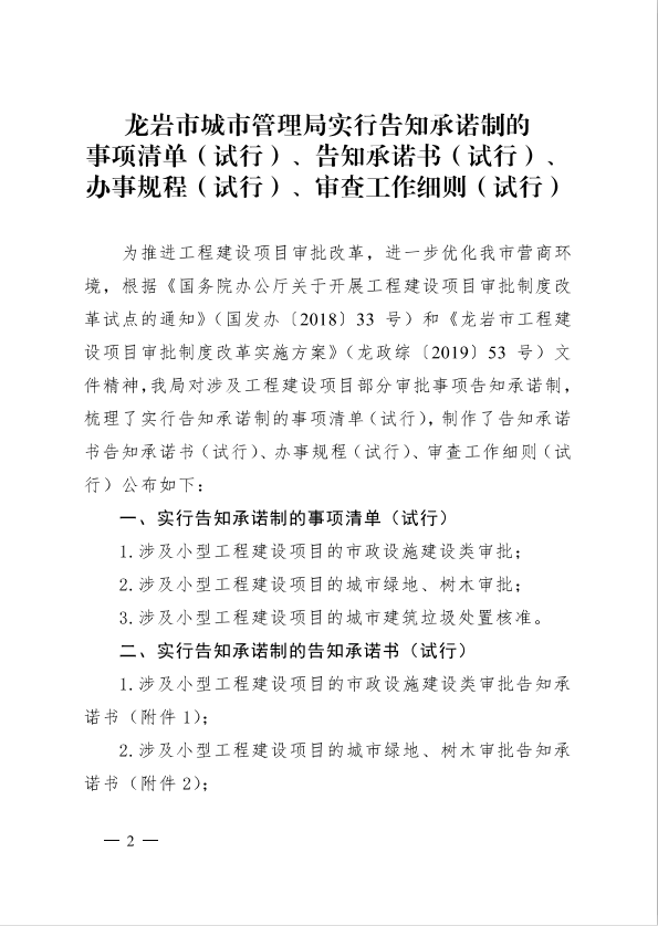 龍巖市城市管理局關于印發(fā)工程建設項目審批制度改革有關政策的通知(龍城[2019]91號)