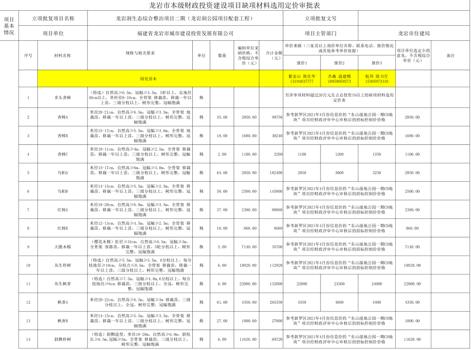 龍巖洞生態(tài)綜合整治二期(龍巖洞公園項目配套工程)缺項材料公示